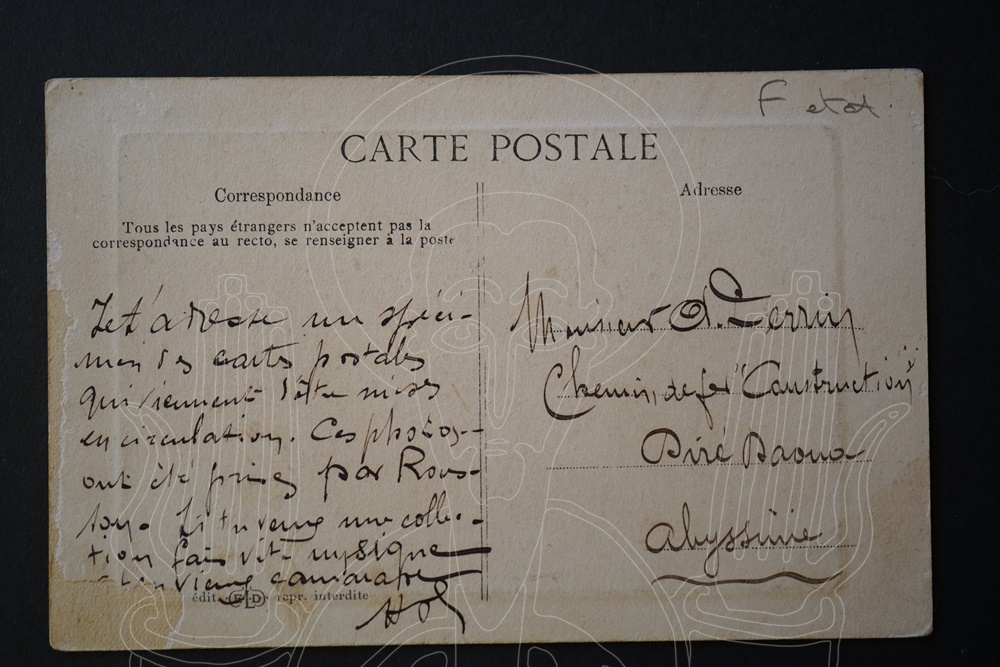 Elle est adresse à Monsieur D. Terrin, Chemin de fer « Construction », Diré Daoua, Abyssinie.