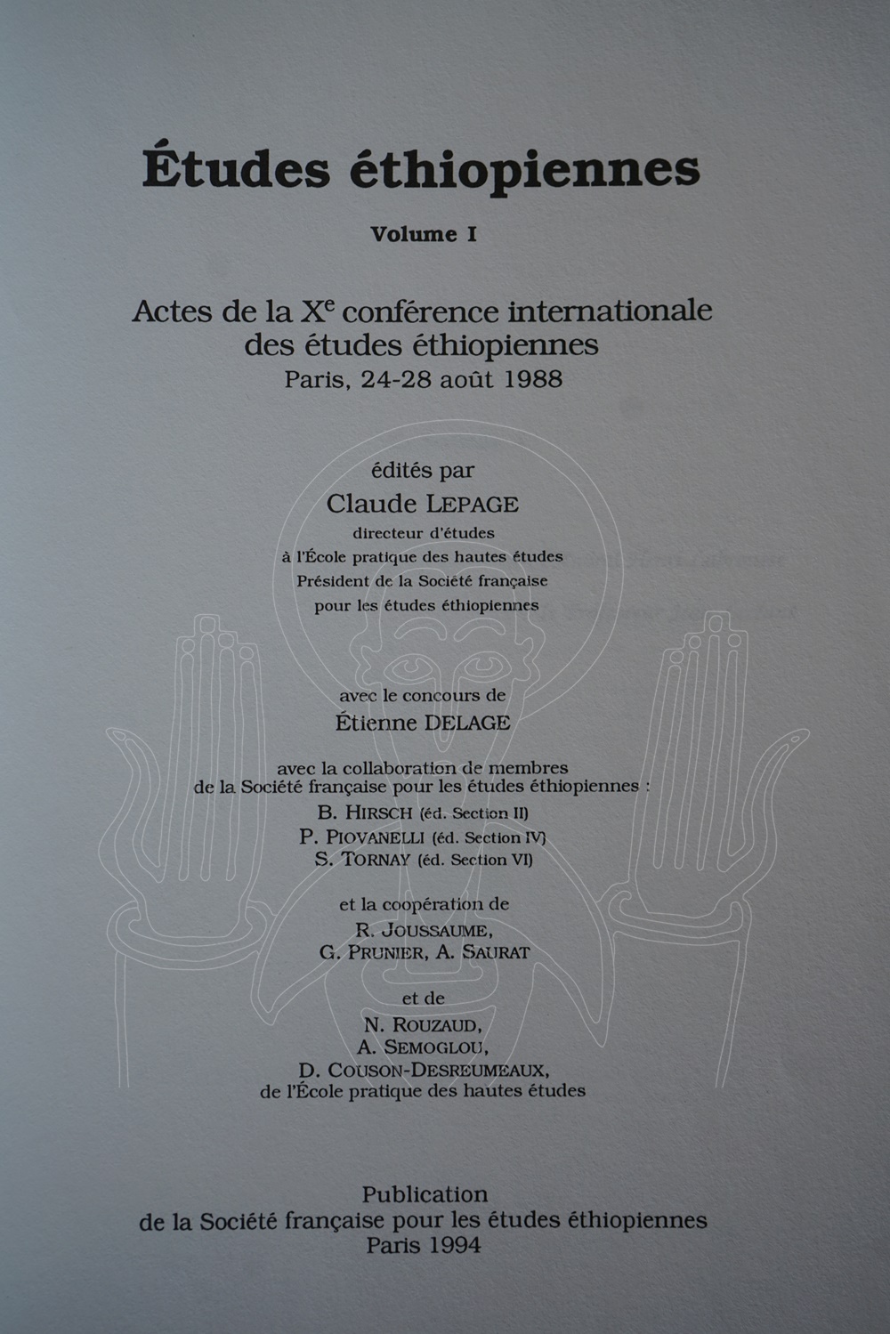 [ICES 10] Études éthiopiennes. Volume 1: Actes de la Xe conférence internationale des études éthiopiennes – Paris, 24-28 août 1988.