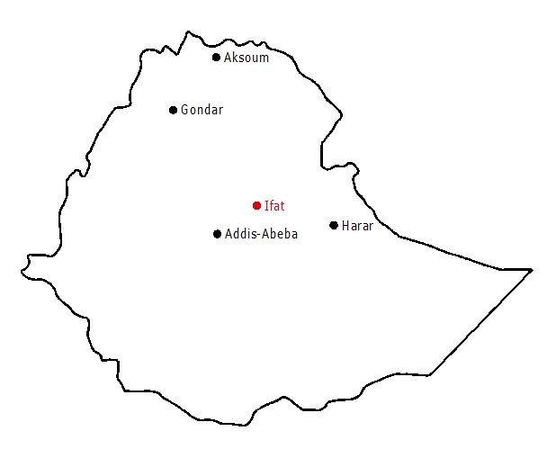 Le sultanat d’Ifat est le « Efát » d’Harris. Il remonte au XIIIe siècle[1] et géographiquement occupe une portion de l’escarpement entre la rive gauche de l’Awash et le bord du plateau éthiopien. Cette bande barre les routes commerciales entre la mer Rouge, le Golf d’Aden, l’Océan Indien et les hauts plateaux éthiopiens. Empruntons à Sven Ege deux cartes qui localise le sultanat[2] :