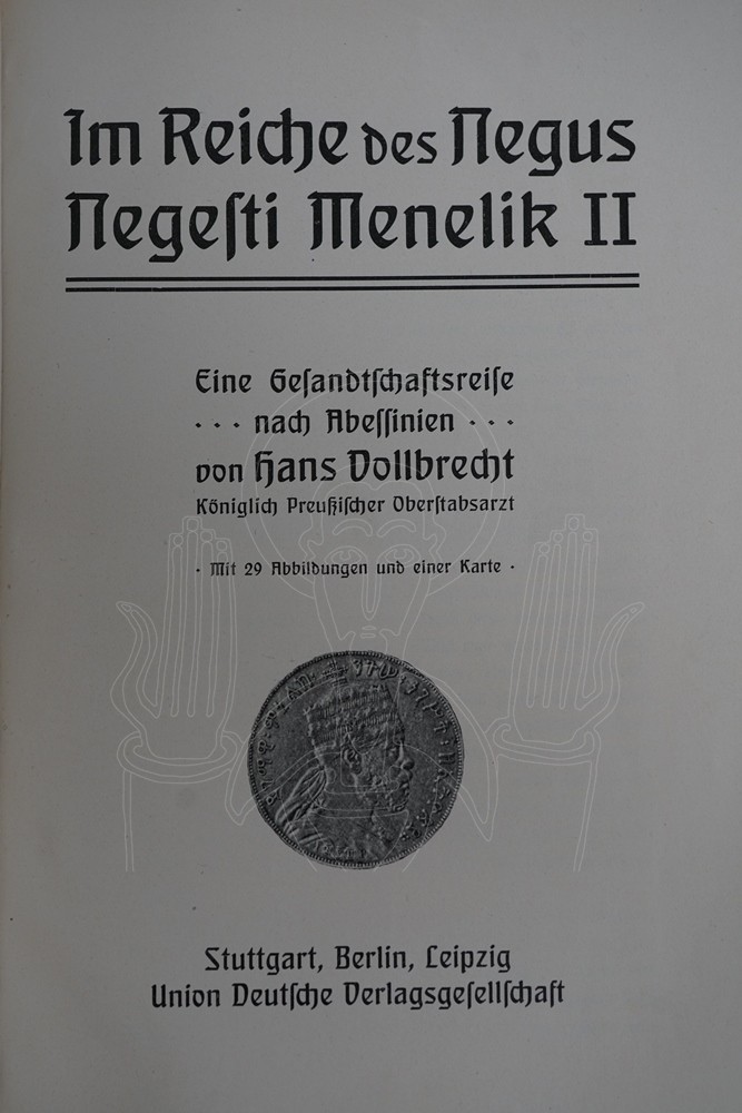 u. 1 Kte, Stgt, Eine Gesandtschaftsreise nach Abessinien. M. 29 Abb. u. 1 Kte. Stgt. (1906). Gr.-8°. 6, 239 S., 1 Bl. Farb. ill. Olwd.