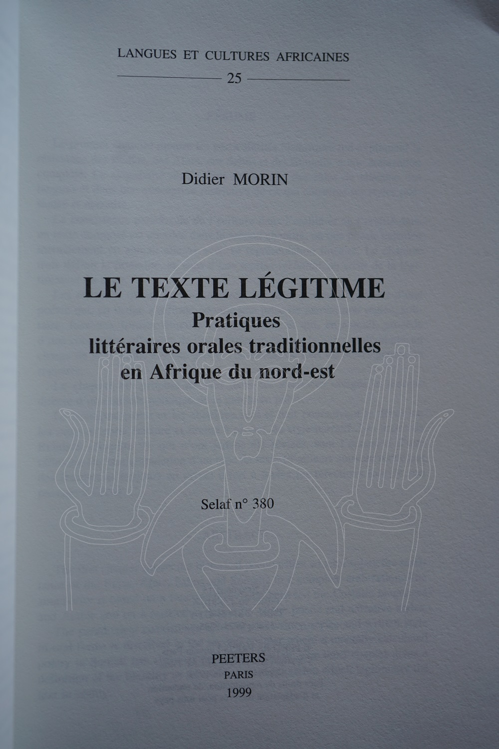 Le texte légitime. Pratiques littéraires orales traditionnelles en Afrique du nord-est.