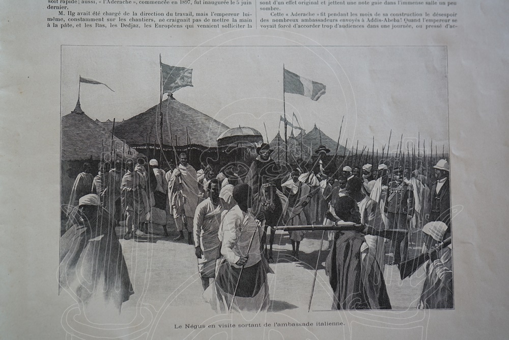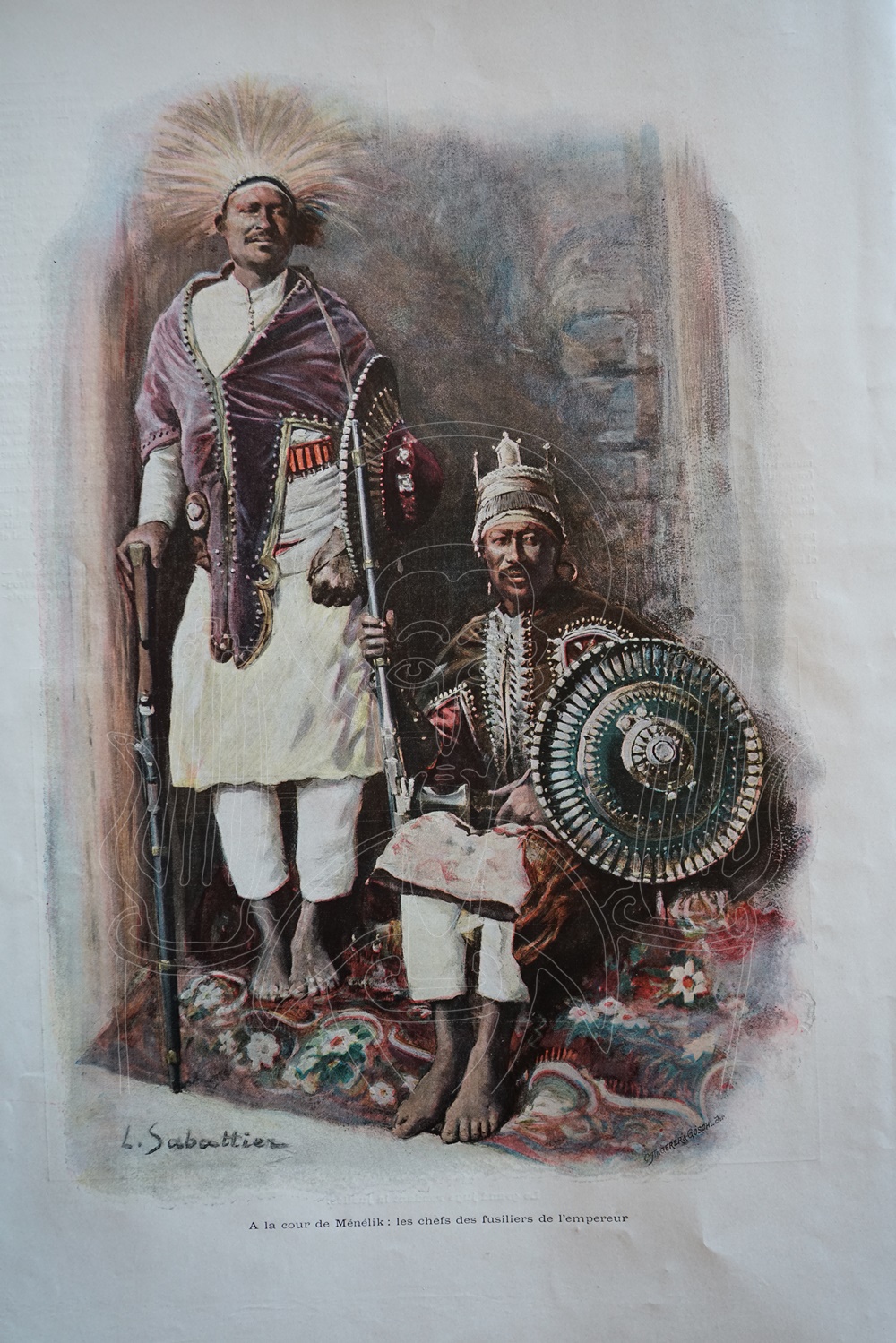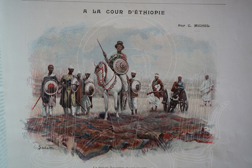 - MICHEL (C[harles]), « À la cour d’Éthiopie ». Cahier de 8 pages non foliotées et insérées entre les pages 202 et 203, illustrations i.a. de Louis Sabattier.