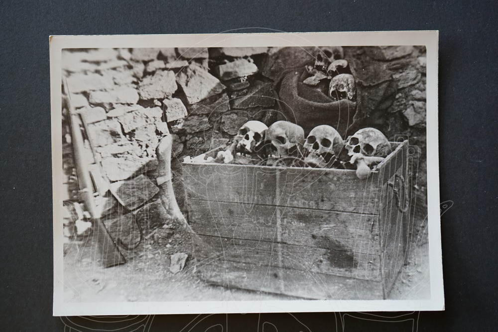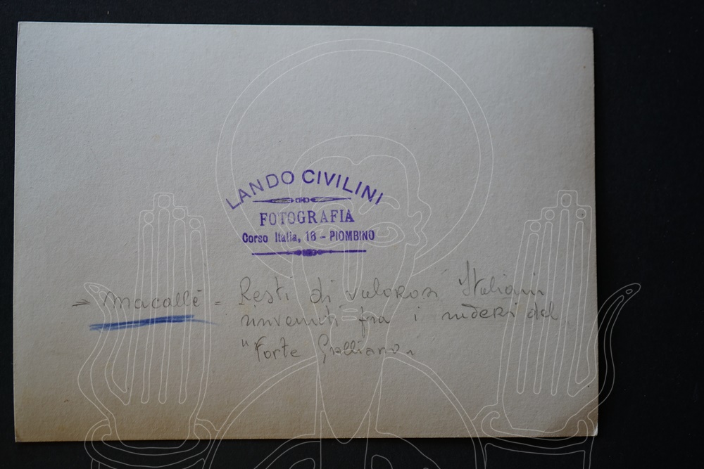 Note manuscrite au dos: « Macallè, resti di valorosi Italiani rivenuti fra i ruderi del « Forte Galliano ».