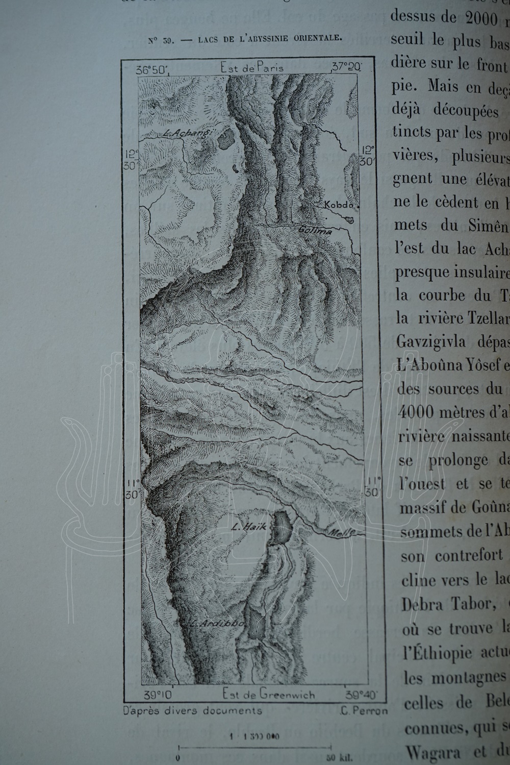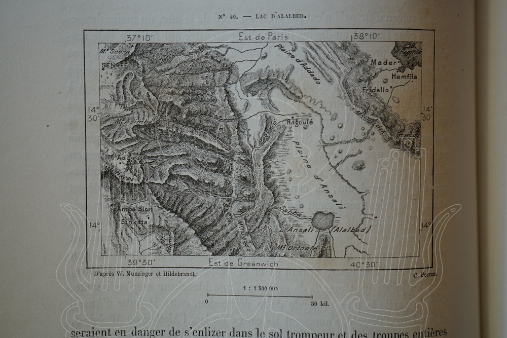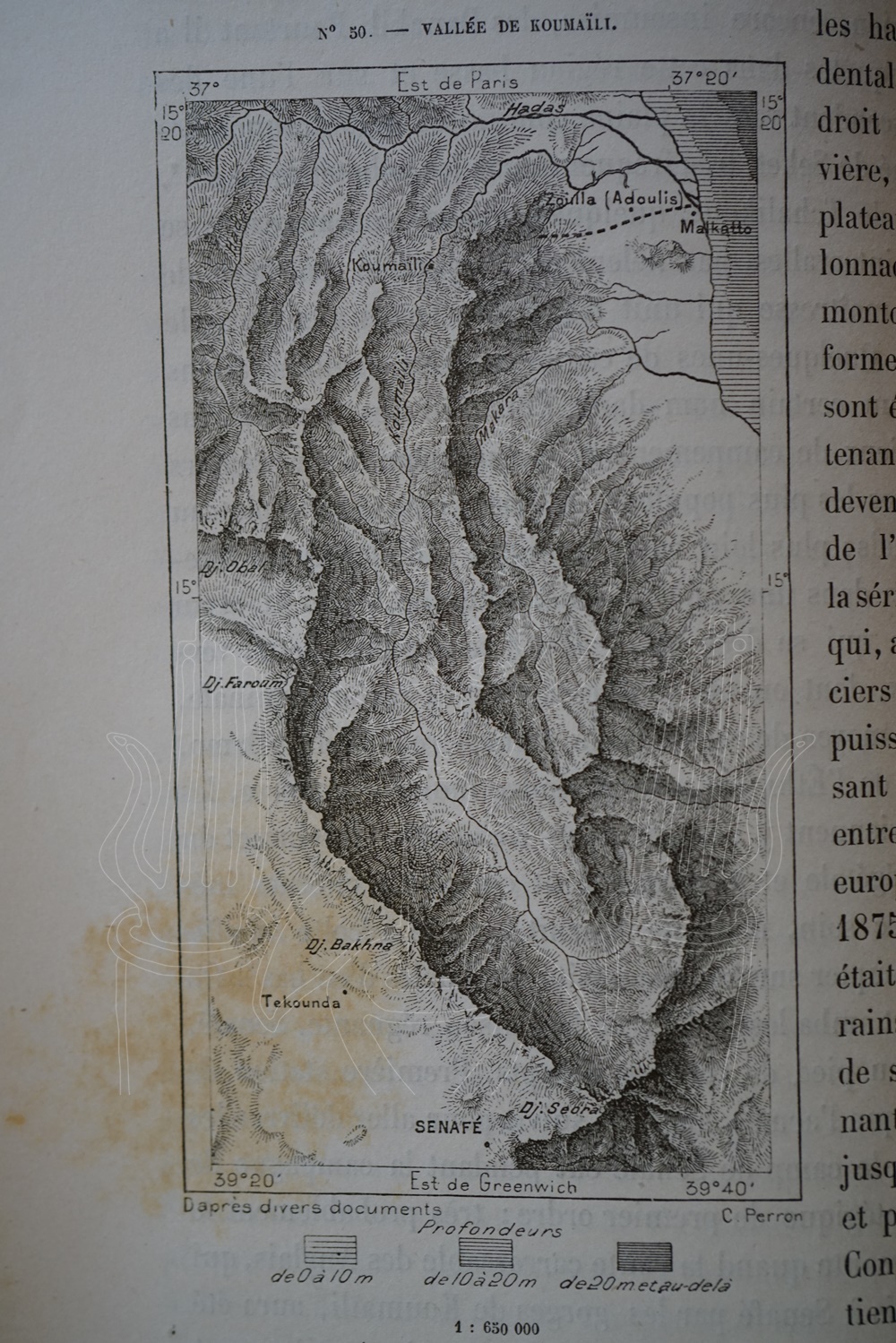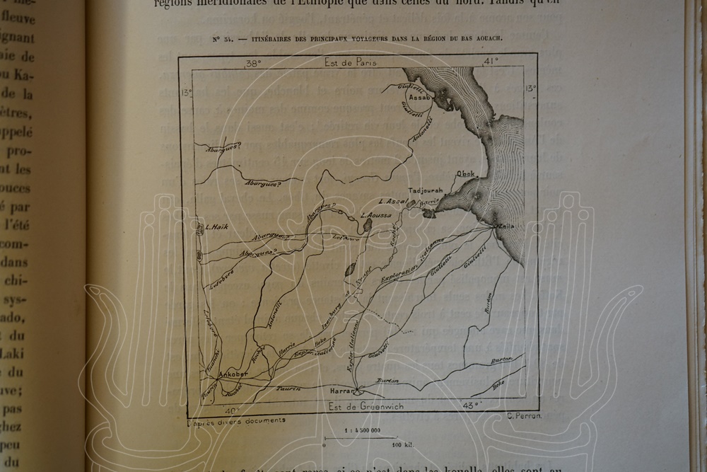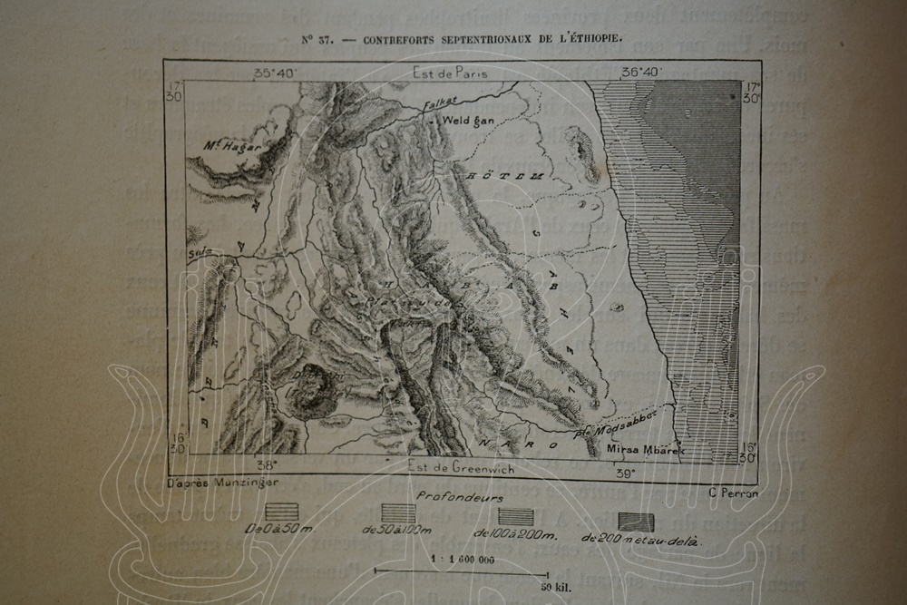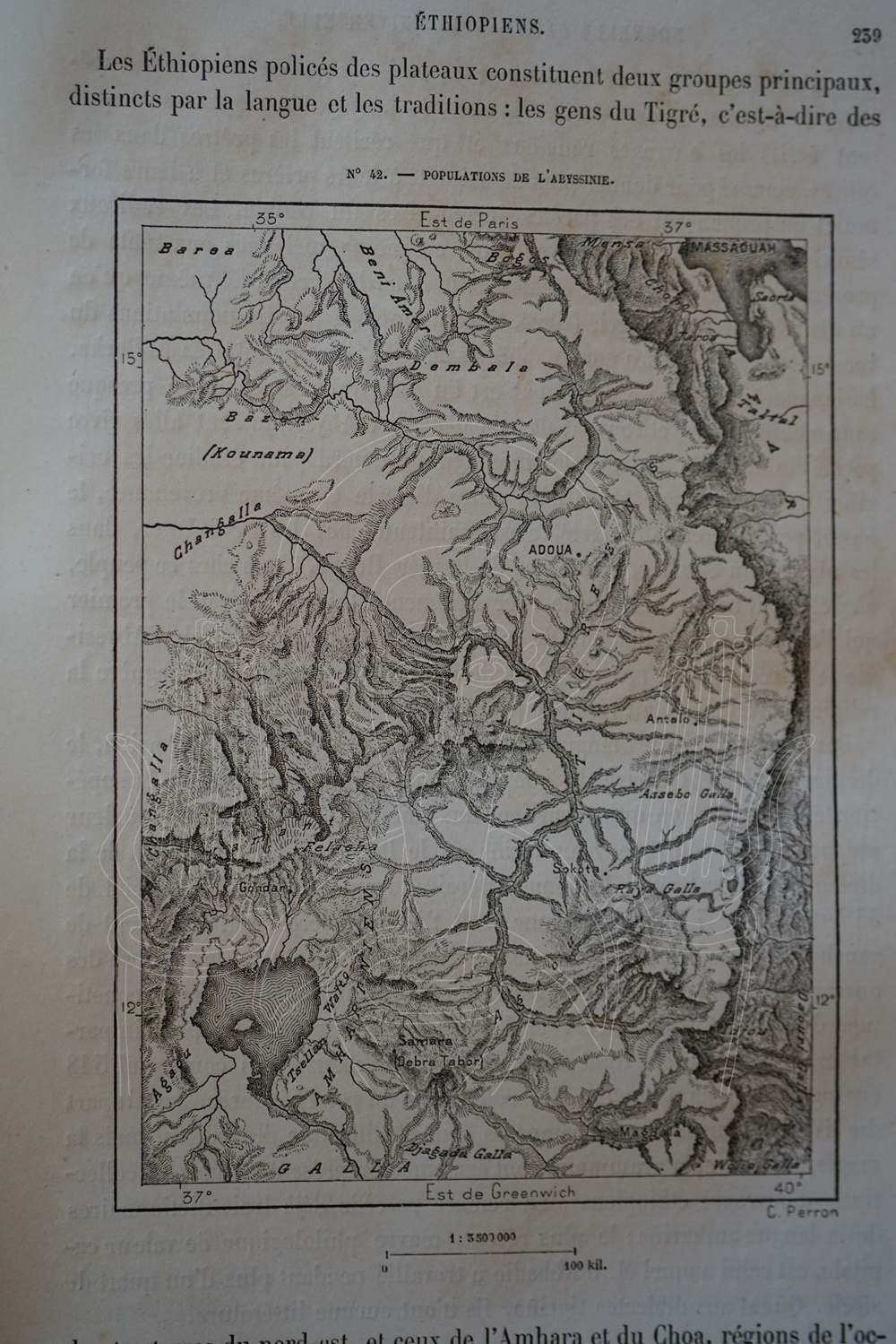 Contenant 3 cartes en couleur tirées à part, 111 cartes intercalées dans le texte et 57 vues ou types gravés sur bois, 619 pages. Broché au format 20 x 28 cm. Dos déboité, intérieur présentant de faibles rousseurs éparses.