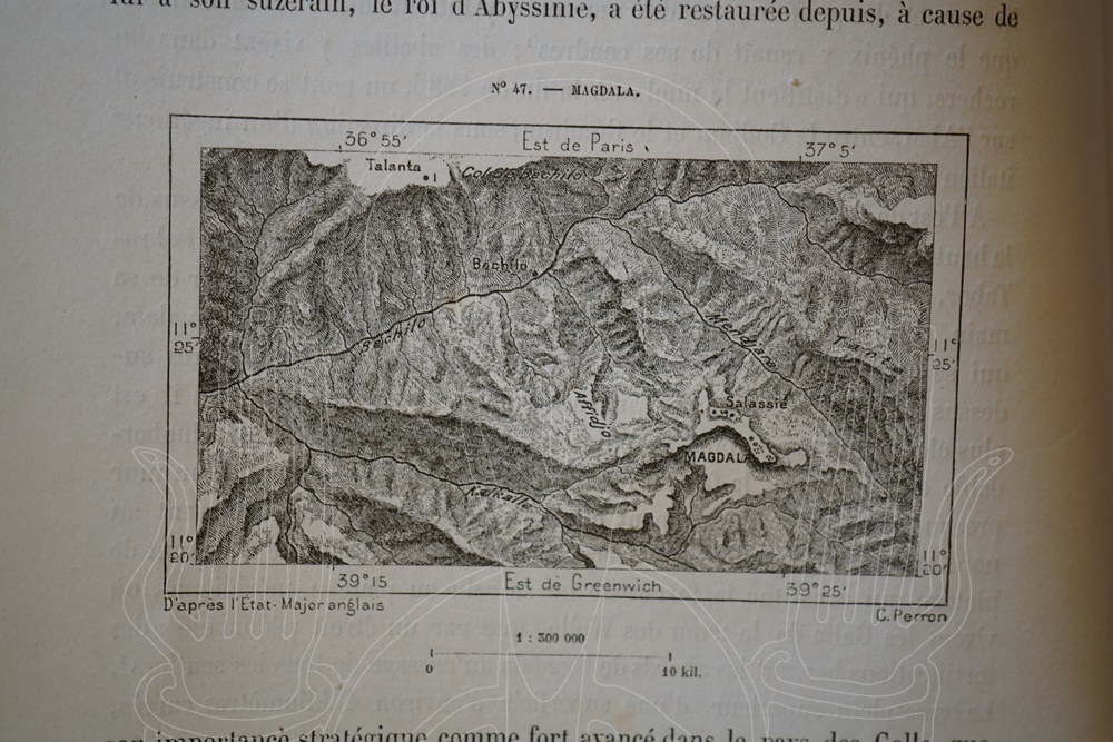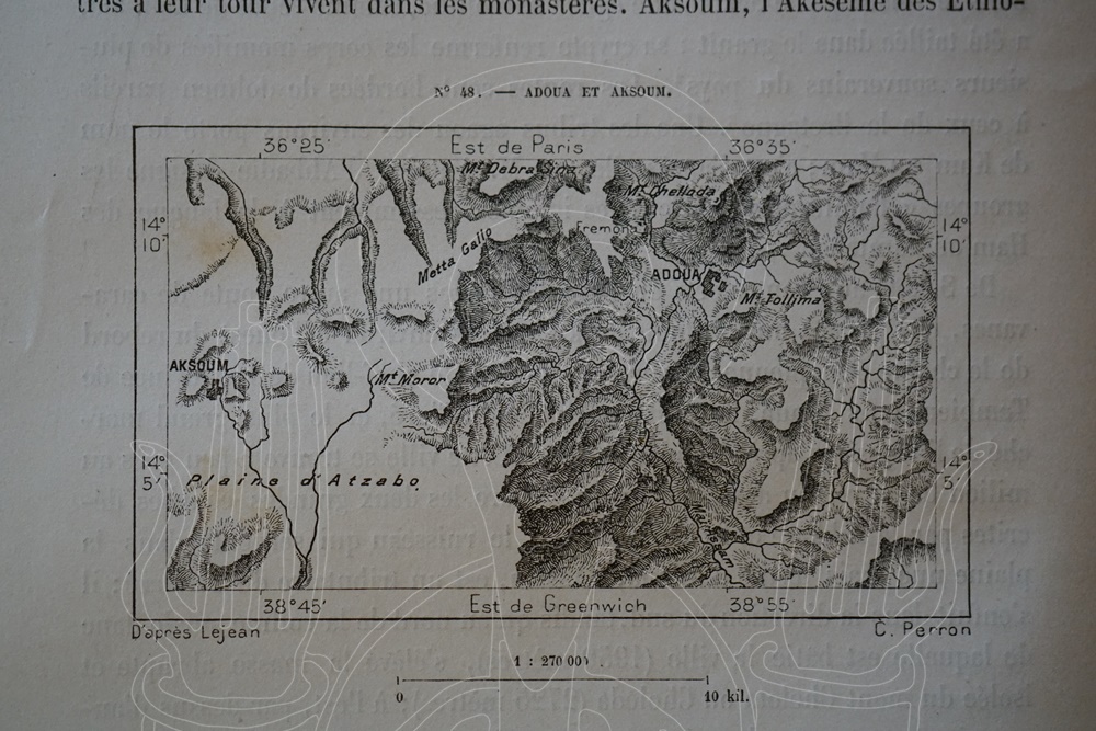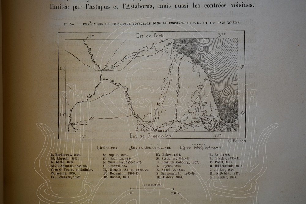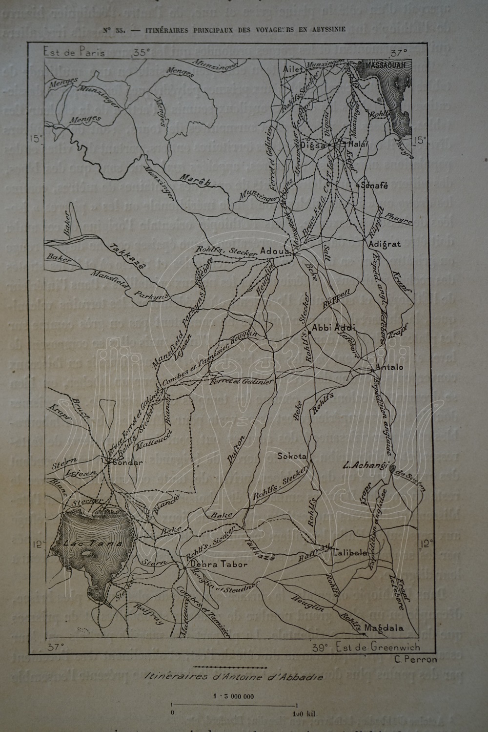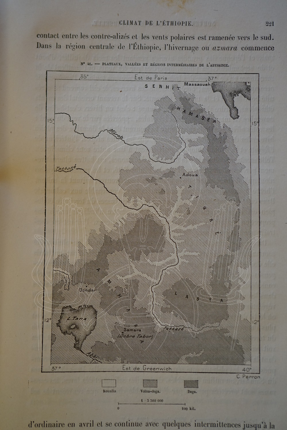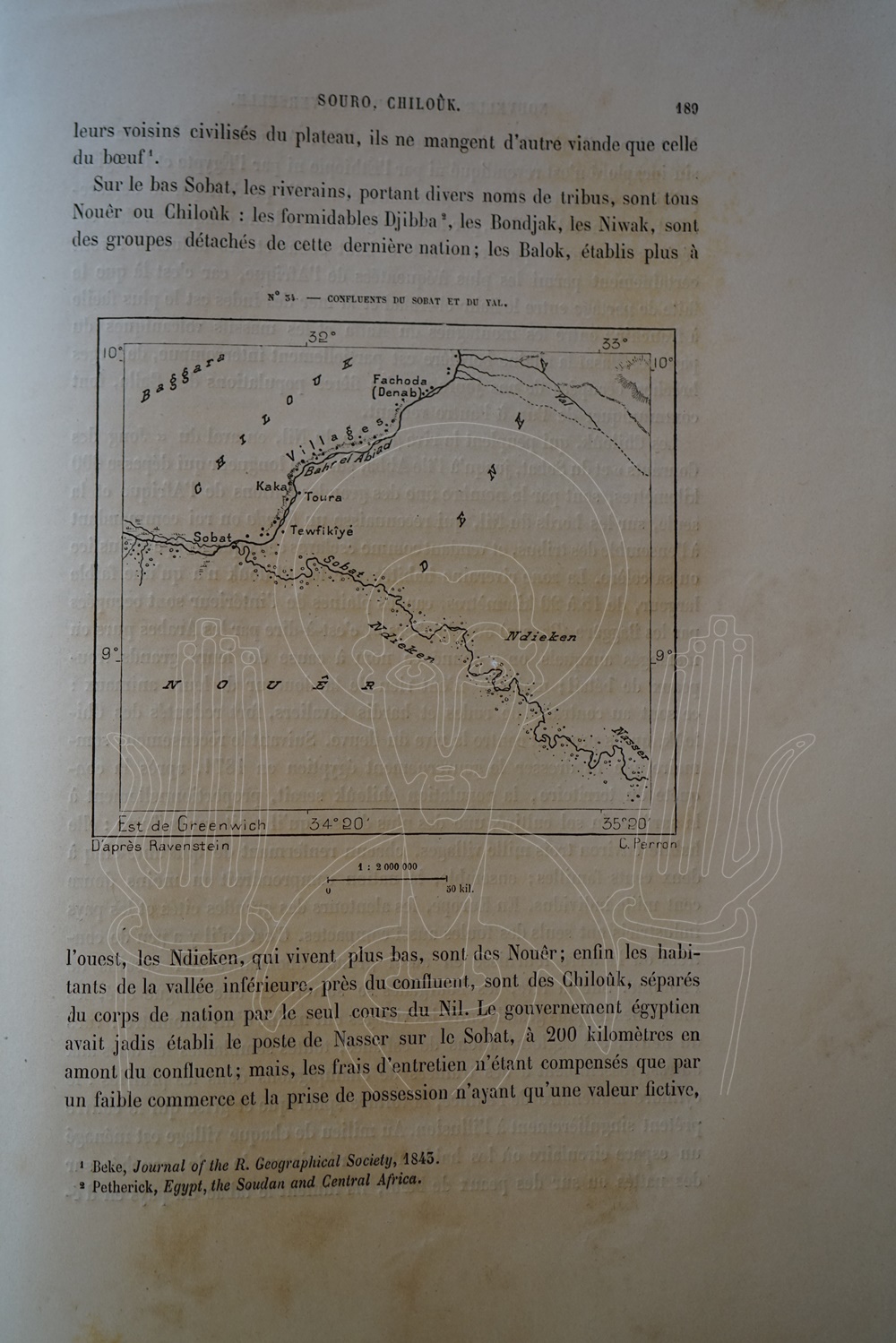 Contenant 3 cartes en couleur tirées à part, 111 cartes intercalées dans le texte et 57 vues ou types gravés sur bois, 619 pages. Broché au format 20 x 28 cm. Dos déboité, intérieur présentant de faibles rousseurs éparses.