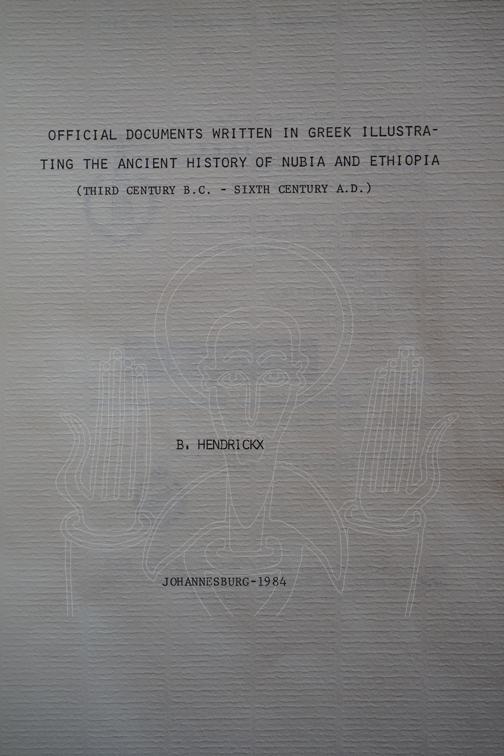 Official Documents Written in Greek Illustrating the Ancient History of Nubia and Ethiopia. 3rd Century B. C. -6th Century A. D.