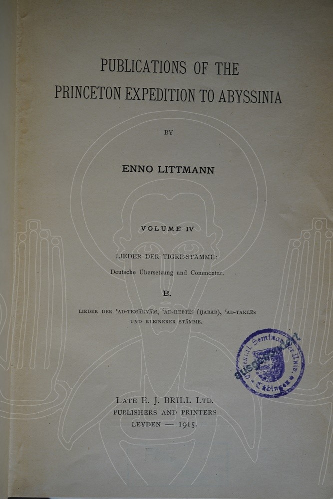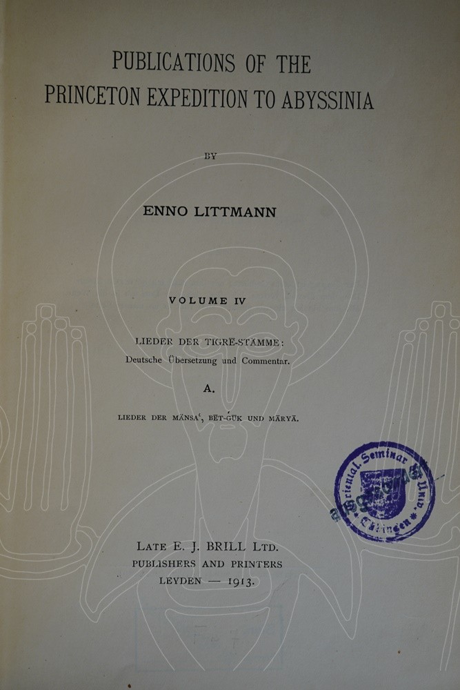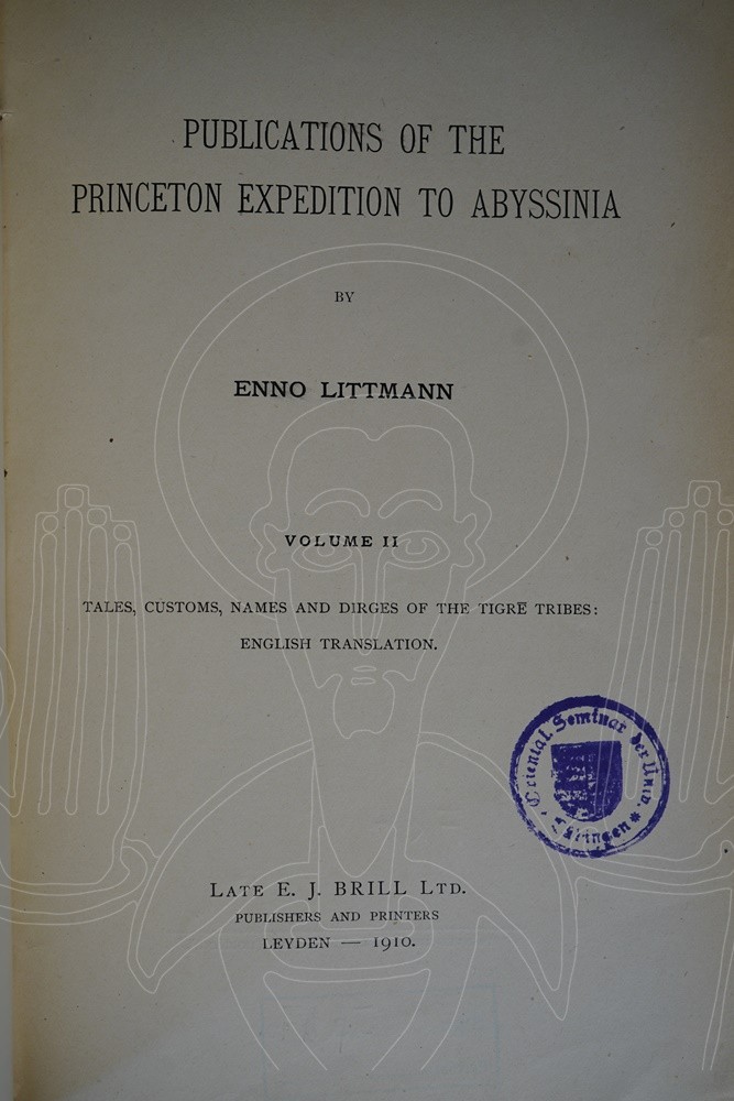 Sous le patronage de Robert Garrett, l’athlète américain double champion olympique mais également banquier et collectionneur de manuscrits anciens, Enno Littmann se rend en octobre 1905 en Éthiopie dans le but d’étudier le langage du Tigré, la littérature et la vie des peuples du Nord de l’Abyssinie.