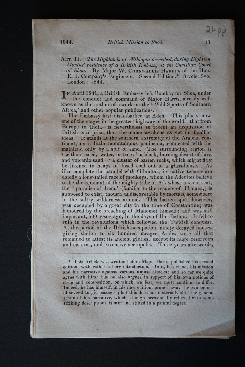 The Highlands of Aethiopia described, during Eighteen Month’s residence of a British Embassy at the Christian Court of Shoa by Major W. Cornwallis Harris.