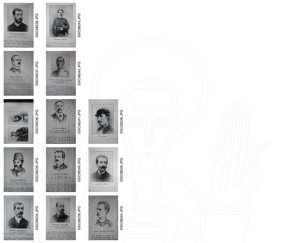 Le comte G. Piero Porro, G. B. Licata, Gerolamo Gottardi, Umberto Romagnoli, Carlo Cocastelli di Montiglio, Guglielmo Zanini, Paolo Bianchi, Giuseppe Blandino